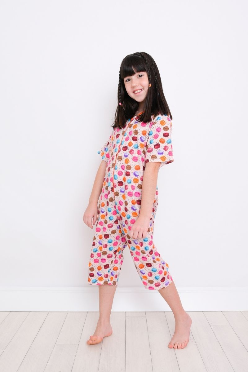Esse modelo de pijama possui gola redonda, manga curta, abertura frontal com zíper e elástico nas costas proporcionando maior flexibilidade ao corpo.